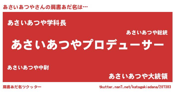 男性向けラノベタイトル風あだ名 | 『はたらくあさいあつやさま!』 |