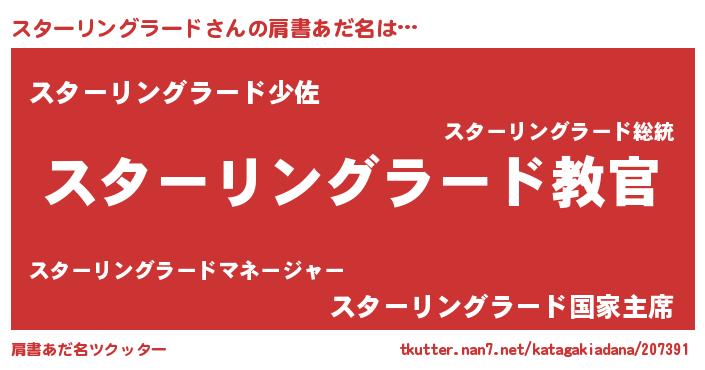 意味不明あだ名 | 『住所不定無職スターリングラード(7歳)』 |