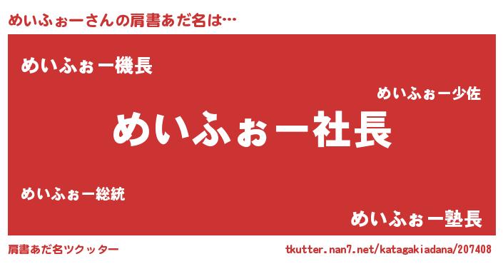 | 欧米人風あだ名 | 『マイケルめいふぉー』 |