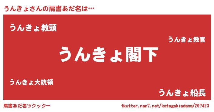 | 意味不明あだ名 | 『自称うんきょ』『永久保存うんきょ』 |