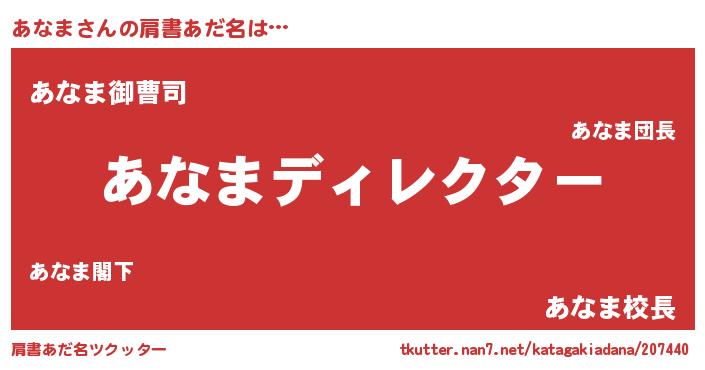 | ファンタジー風あだ名 | 『アナフェル』『アナディッシュ』 |
