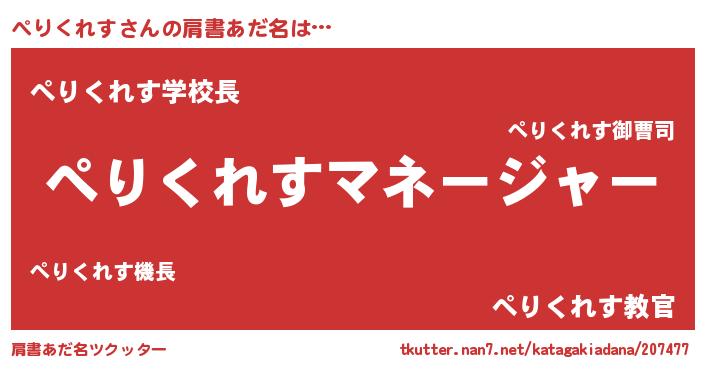 | ヒーロー風カッコイイあだ名 | 『正義の使者ぺりくれす』『仮面ペリダー』 |