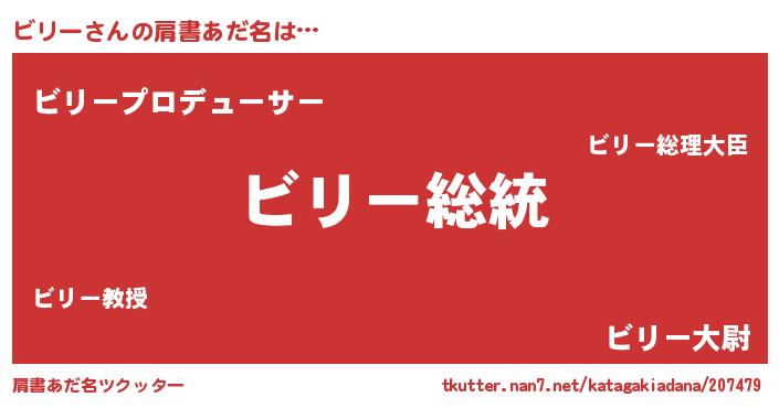 | ヒーロー風カッコイイあだ名 | 『ウルトラ戦士ビリー』『仮面ビリダー』 |
