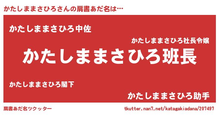 | 男性向けラノベタイトル風あだ名 | 『かたしままさひろの嫁は女の子じゃないと思った?』 |