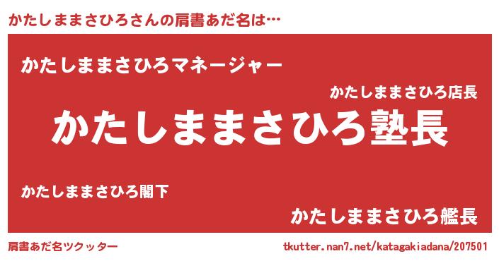 | 意味不明あだ名 | 『とにかく怪しいかたしままさひろ』 |