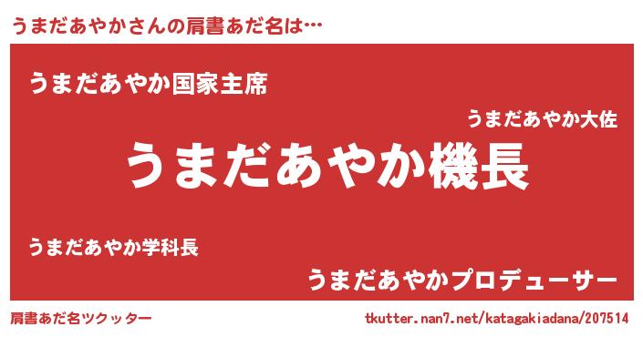 | 意味不明あだ名 | 『うまだあやかフォーエバー』 |
