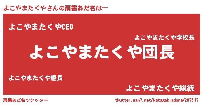 | 意味不明あだ名 | 『とにかく怪しいよこやまたくや』 |