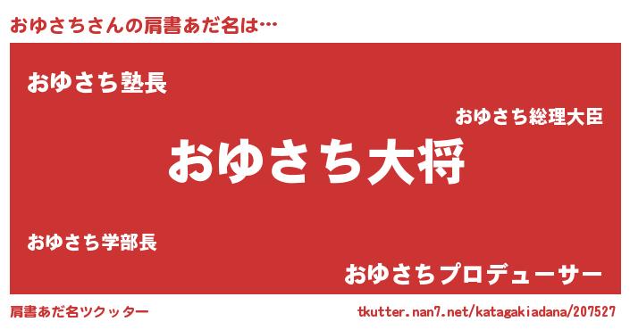 | 男性向けラノベタイトル風あだ名 | 『転生したらおゆさちだった件』 |