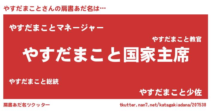 | 男性向けラノベタイトル風あだ名 | 『やはりやすだまことの青春ラブコメはまちがっている 』 |