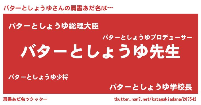 | 意味不明あだ名 | 『永久保存バターとしょうゆ』 |