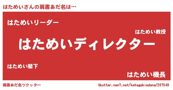 | 意味不明あだ名 | 『とにかく怪しいはためい』 |