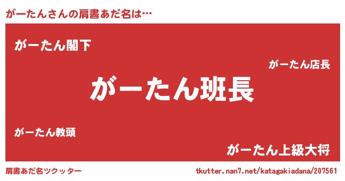 | 意味不明あだ名 | 『とにかく怪しいがーたん』 |