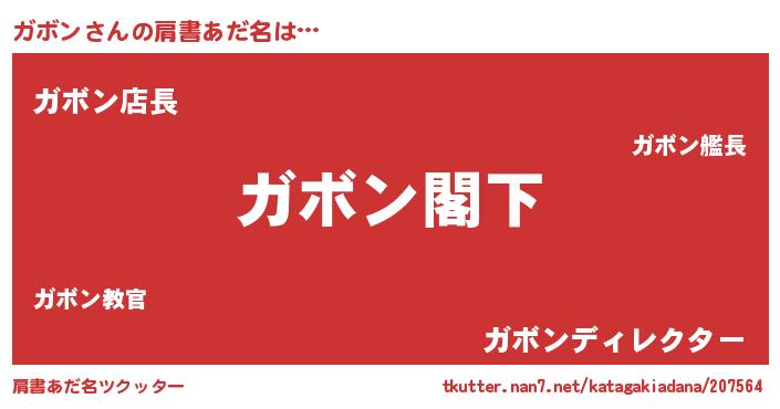 | 男性向けラノベタイトル風あだ名 | 『Re:ガボンから始める異世界生活』 |