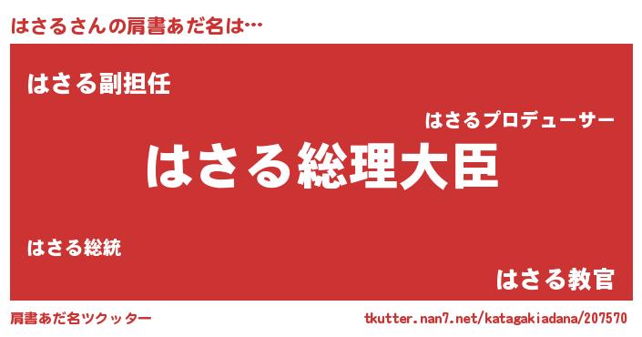 | ポケモン風あだ名 | 『ハサルダネ』『ゼニハサ』 |