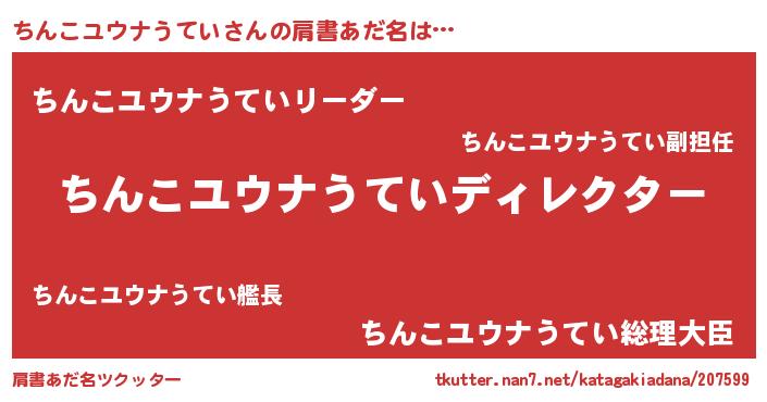 | 男性向けラノベタイトル風あだ名 | 『ちんこユウナうていに滅ぼされるだけの簡単なお仕事です』 |