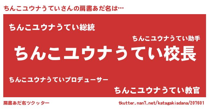| 意味不明あだ名 | 『永久保存ちんこユウナうてい』 |