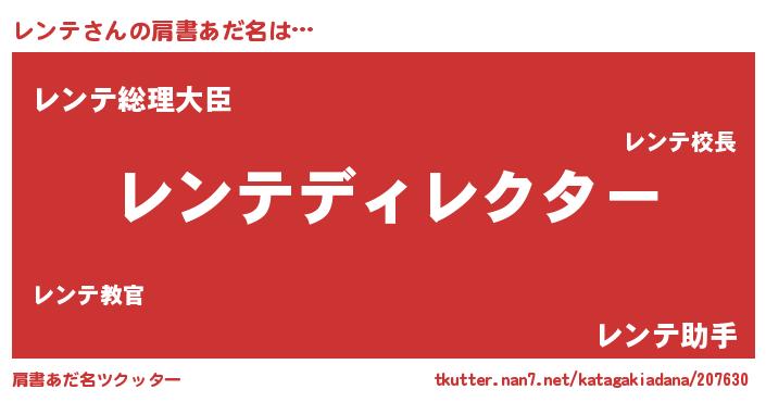 | 男性向けラノベタイトル風あだ名 | 『レンテに滅ぼされるだけの簡単なお仕事です』 |
