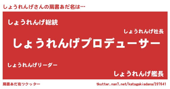 | 意味不明あだ名 | 『自称しょうれんげ』 |