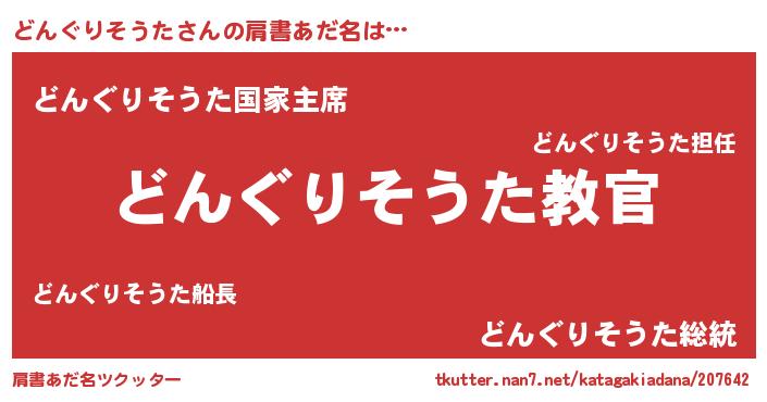 | 意味不明あだ名 | 『住所不定無職どんぐりそうた(86歳)』 |