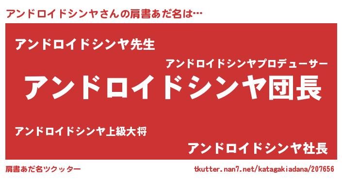 | 胡散臭い通販商品みたいなあだ名 | 『信頼と実績のサプリメント…その名も「アンドロイドシンヤ」』 |
