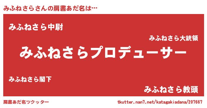 | 男性向けラノベタイトル風あだ名 | 『みふねさらに滅ぼされるだけの簡単なお仕事です』 |