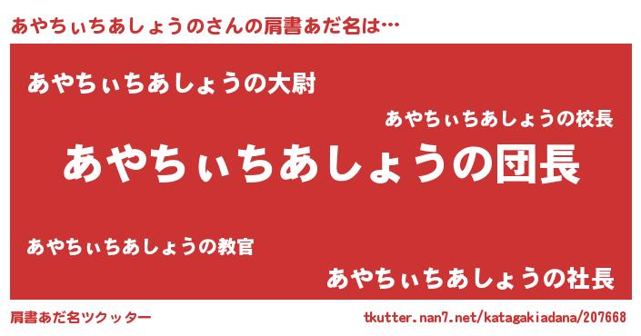 | 意味不明あだ名 | 『とにかく怪しいあやちぃちあしょうの』 |