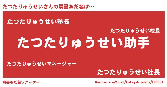 | ヒーロー風カッコイイあだ名 | 『慈愛の使者たつたりゅうせい』 |
