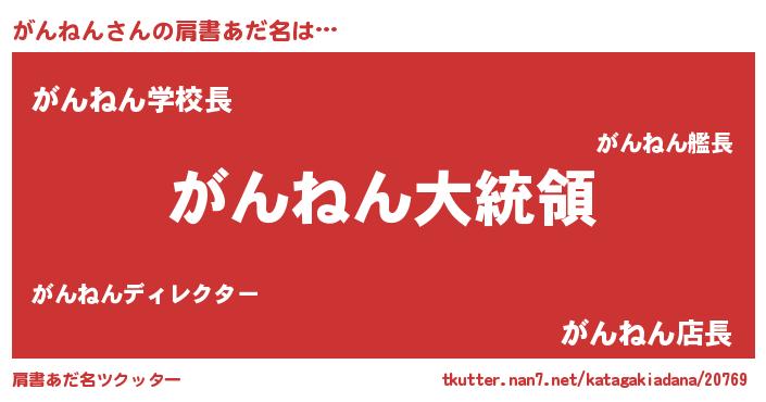 | 意味不明あだ名 | 『がんねんフォーエバー』 |