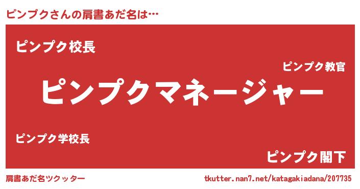 | 意味不明あだ名 | 『永久保存ピンプク』『自称ピンプク』 |