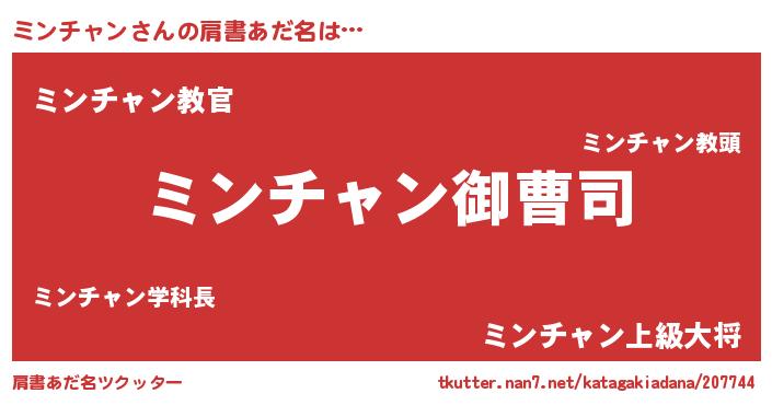 | 男性向けラノベタイトル風あだ名 | 『ミンチャンアートオンライン』 |