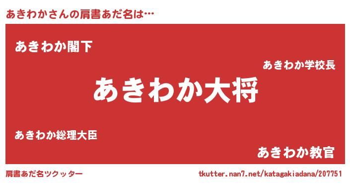 | 恥ずかしいあだ名 | 『アキワカデラックス』『あきっちょ』 |