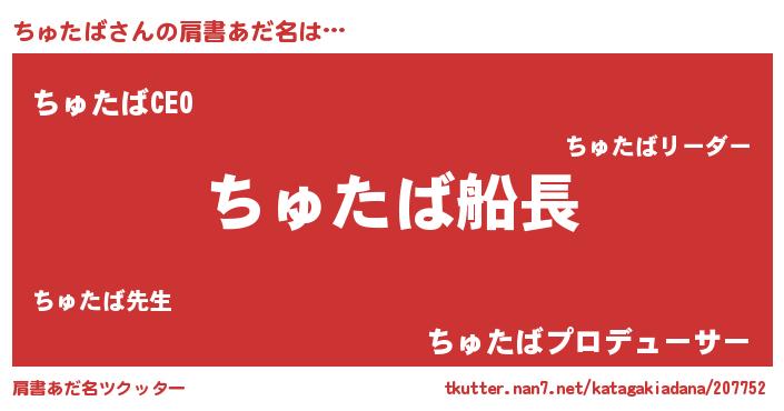 | 男性向けラノベタイトル風あだ名 | 『緋弾のチュタバ』『ちゅたばの憂鬱』 |