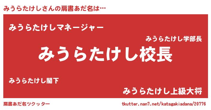 | ヘコむあだ名 | 『みうらたけし(爆)』『みう太郎』 |
