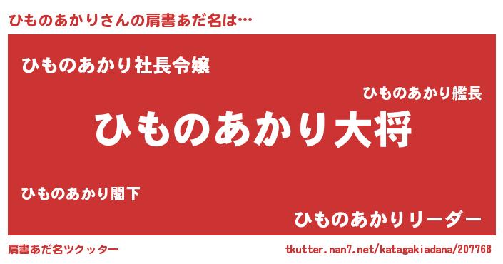 | 女子向けラノベタイトル風あだ名 | 『ひものあかりの玉の輿計画!』 |