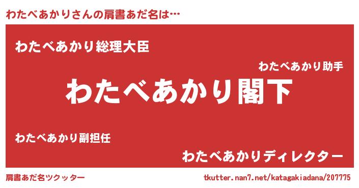 | 意味不明あだ名 | 『自称わたべあかり』 |