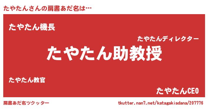 | 欧米人風あだ名 | 『ダニエルたやたん』『マイケルたやたん』 |