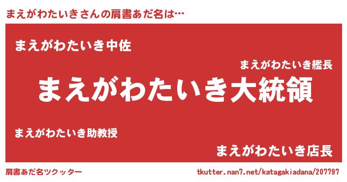 | ファンタジー風あだ名 | 『エターナルマエガワタイキー』 |