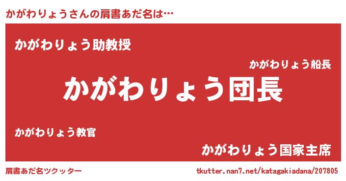 | 胡散臭い通販商品みたいなあだ名 | 『信頼と実績のサプリメント…その名も「かがわりょう」』 |