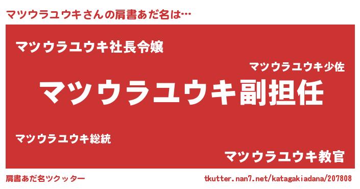 | 胡散臭い通販商品みたいなあだ名 | 『来世でも幸せになれる水素水…その名も「マツウラユウキ」』 |