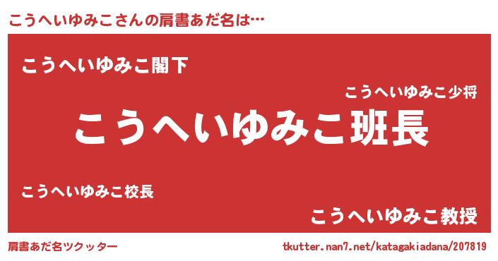 | 意味不明あだ名 | 『とにかく怪しいこうへいゆみこ』 |