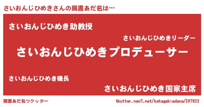 | 男性向けラノベタイトル風あだ名 | 『はたらくさいおんじひめきさま!』 |