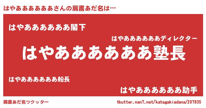 | ピコ太郎風あだ名 | 『ハヤ四郎』『ハハ太郎』『ピハ史郎』 |