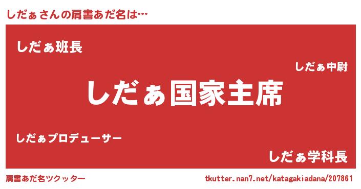 | 男性向けラノベタイトル風あだ名 | 『やはりしだぁの青春ラブコメはまちがっている 』 |