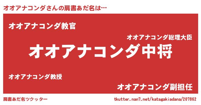 | ヒーロー風カッコイイあだ名 | 『仮面オオダー』『ネオオオアナコンダ』 |