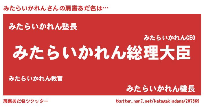 | 欧米人風あだ名 | 『みたらいかれんクリステル』 |