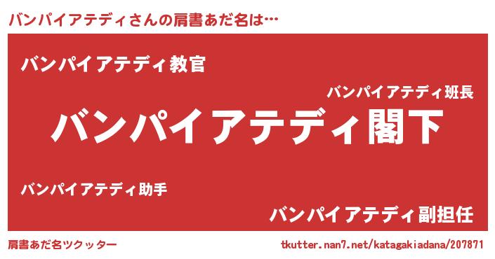 | 女子向けラノベタイトル風あだ名 | 『バンパイアテディなんてお断りですっ。』 |