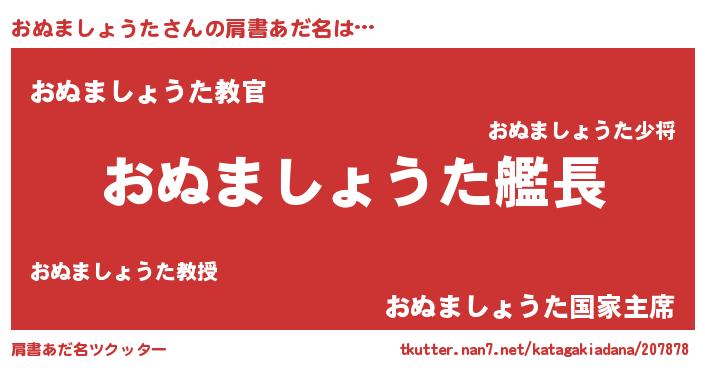 | 男性向けラノベタイトル風あだ名 | 『うちのおぬましょうたが世界を掌握している!』 |