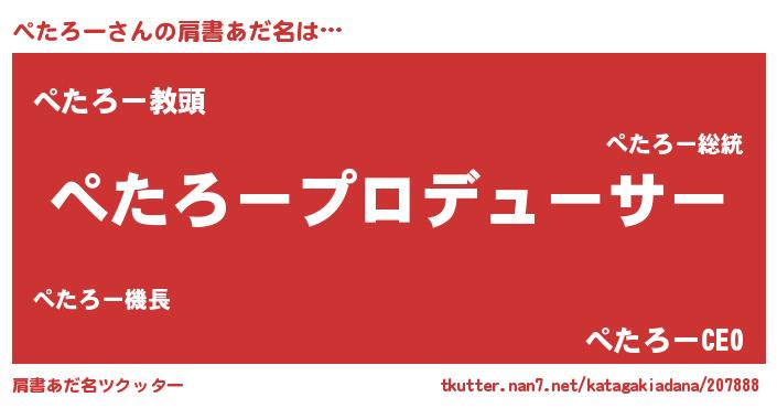 | 男性向けラノベタイトル風あだ名 | 『ぺたろーに滅ぼされるだけの簡単なお仕事です』 |