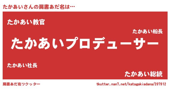 | ヒーロー風カッコイイあだ名 | 『仮面タカダー』『サイバー戦士タカアイ』 |