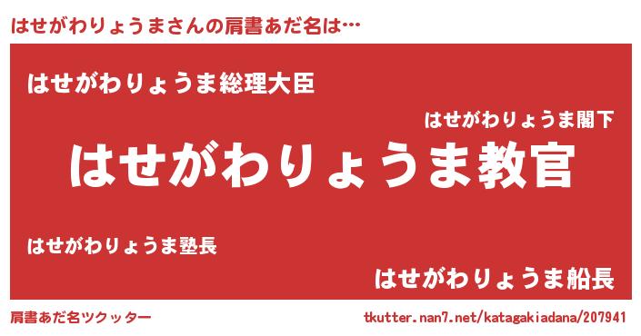 | 意味不明あだ名 | 『住所不定無職はせがわりょうま(86歳)』 |